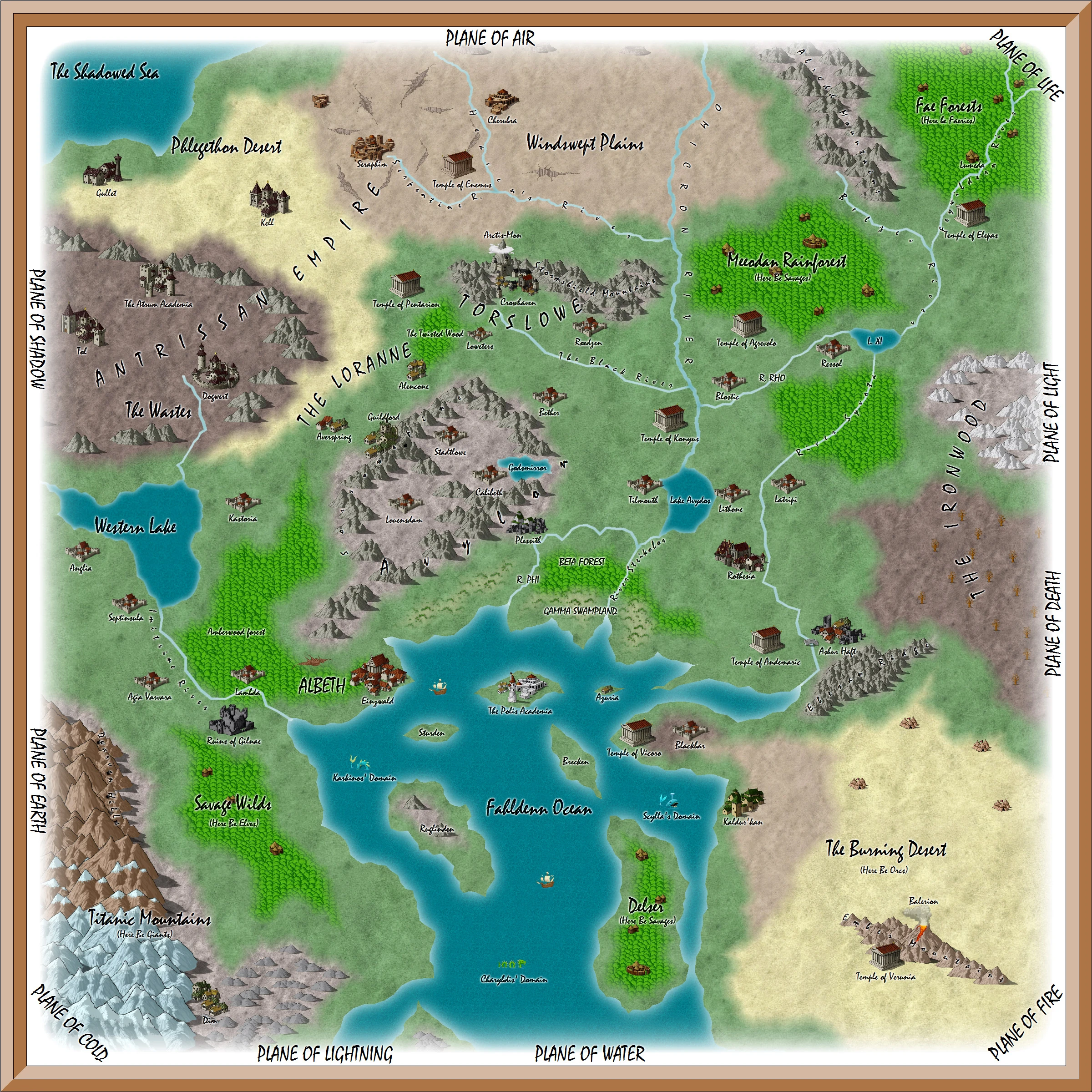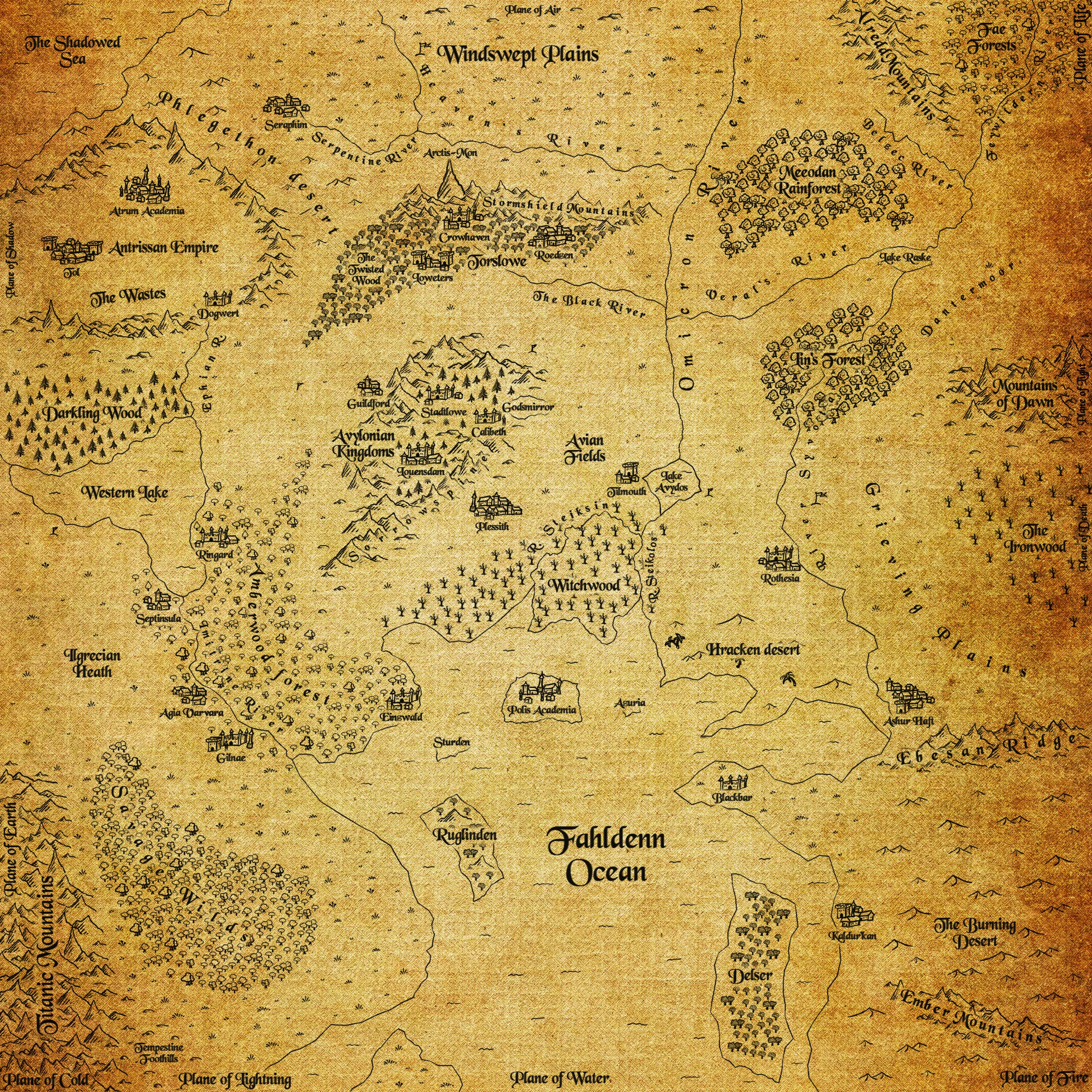 Greater: Windswept Plains ▪ Burning Desert ▪ Titanic Mountains ▪ Avylon ▪ The Wastes ▪ Phlegethon desert |